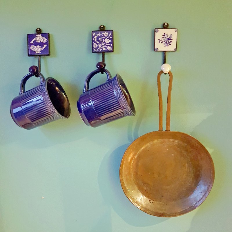 4 Coat hooks-cup hooks-towel hooks-functional & decorative home decor wall hooks for kitchen, bedroom, bathroom. 2 by 5 inches.