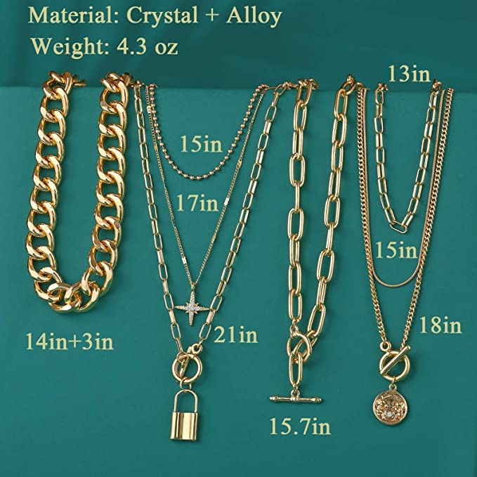 ¡CHUNKY GOLD NECKLACE Dainty layered choker necklaces with Lock, Medallion, Pearl, and Disc/Coin, which makes it stands out among all other plain necklaces. Figaro/Pearl chain wear alone with casual or formal attire for everyday modern elegance. This gold chain necklace perfect balance of minimal and statement with a front-facing toggle clasp making it also great for wear on its own