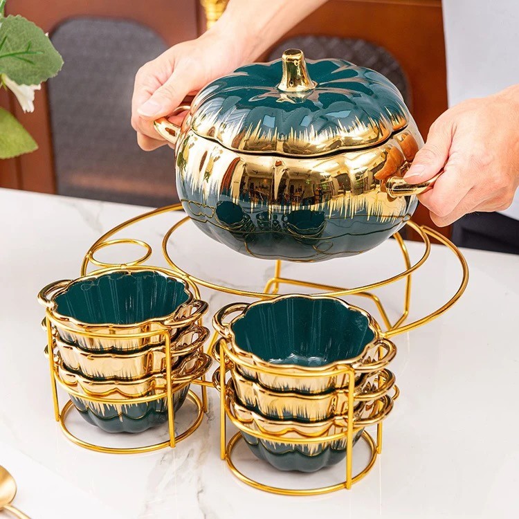 Introducing our Pumpkin Soup Bowl Set with Dual Handles, a perfect blend of functionality and style for your kitchen. This heat-resistant soup pot is designed with two sturdy handles for easy and safe handling. Ideal for serving hearty soups, stews, and other hot dishes, its charming pumpkin shape adds a touch of rustic elegance to your table. Whether for everyday meals or festive gatherings, this set is both a practical and decorative addition to your household. Enjoy a warm, inviting dining experience with this unique soup bowl set. Available in three colors: white, green and black.