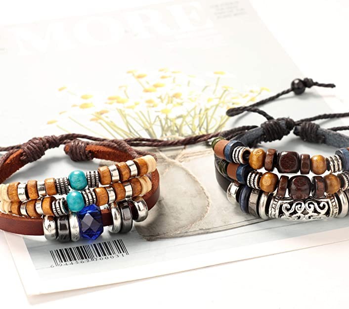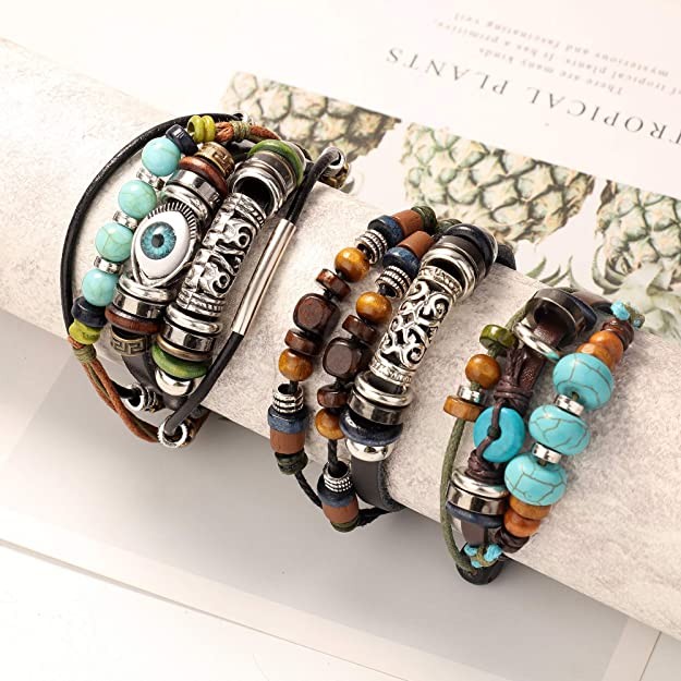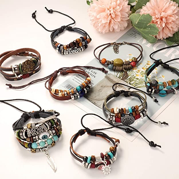 8Pcs Vintage Bohemia Wind Beaded Bracelet Multilayer Hand Woven Wristbands Hemp Cords Wrap Bracelet