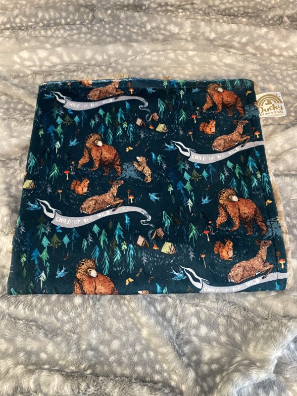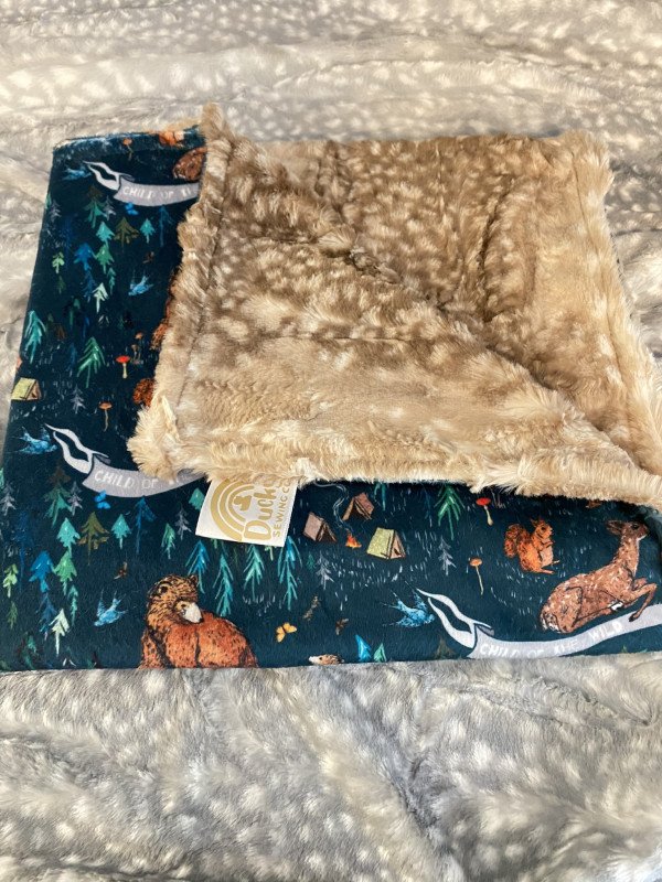 Measuring 18" by 36", this minky baby blanket features stunning Spoonflower fabric on the front showcasing an independent artist’s design. The reverse side is crafted from "Fawn Hide" plush, extra-high pile minky, offering exceptional softness. Made with premium-quality materials, this throw combines artistry and luxury for lasting comfort.