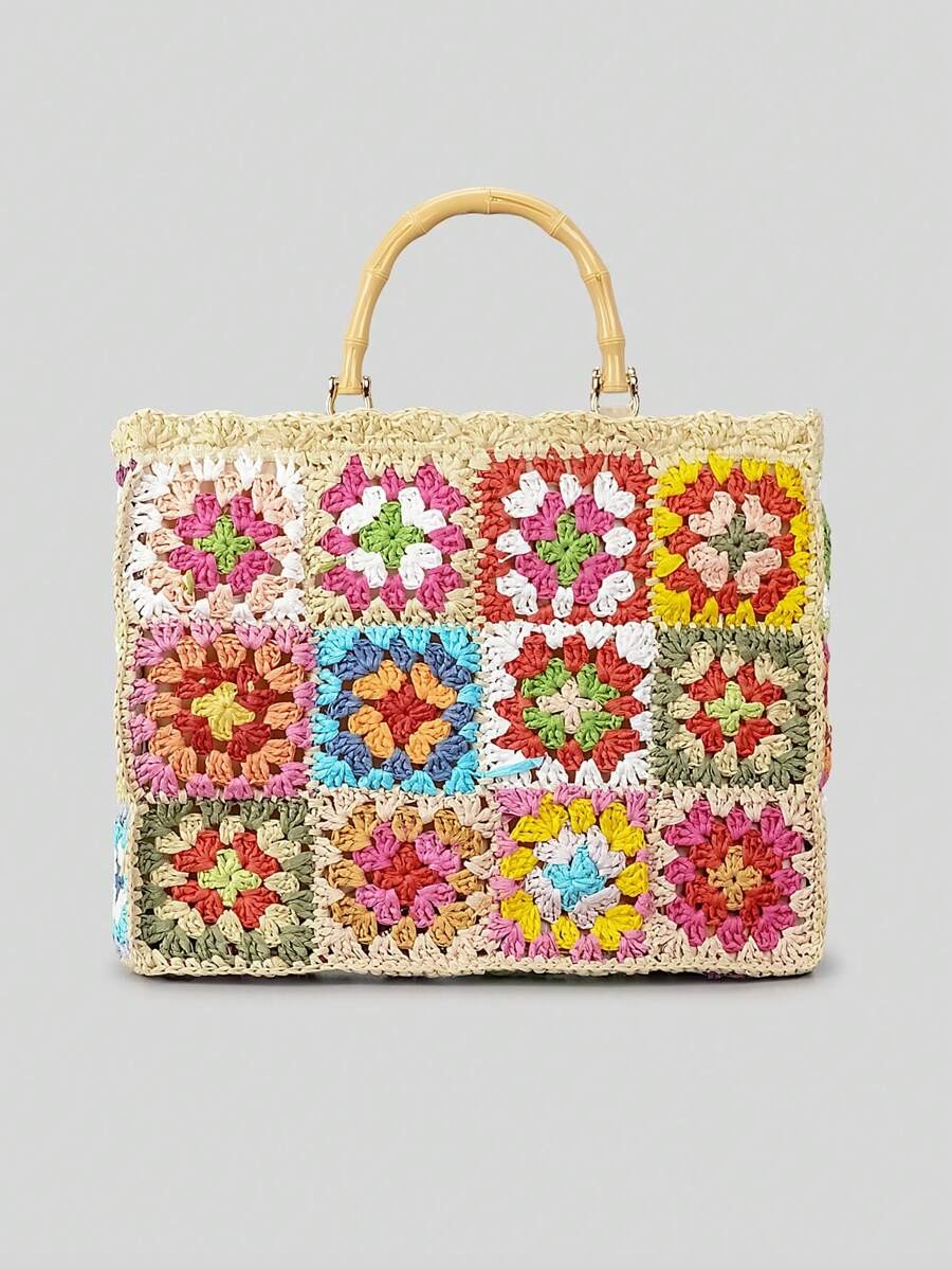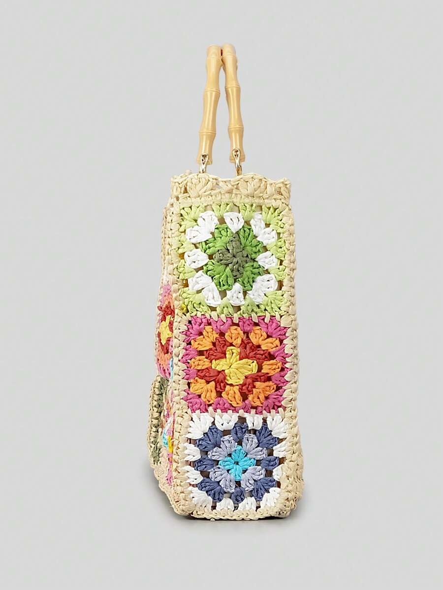 Floral Graphic Tote Bag Double Handle Crochet Bag
