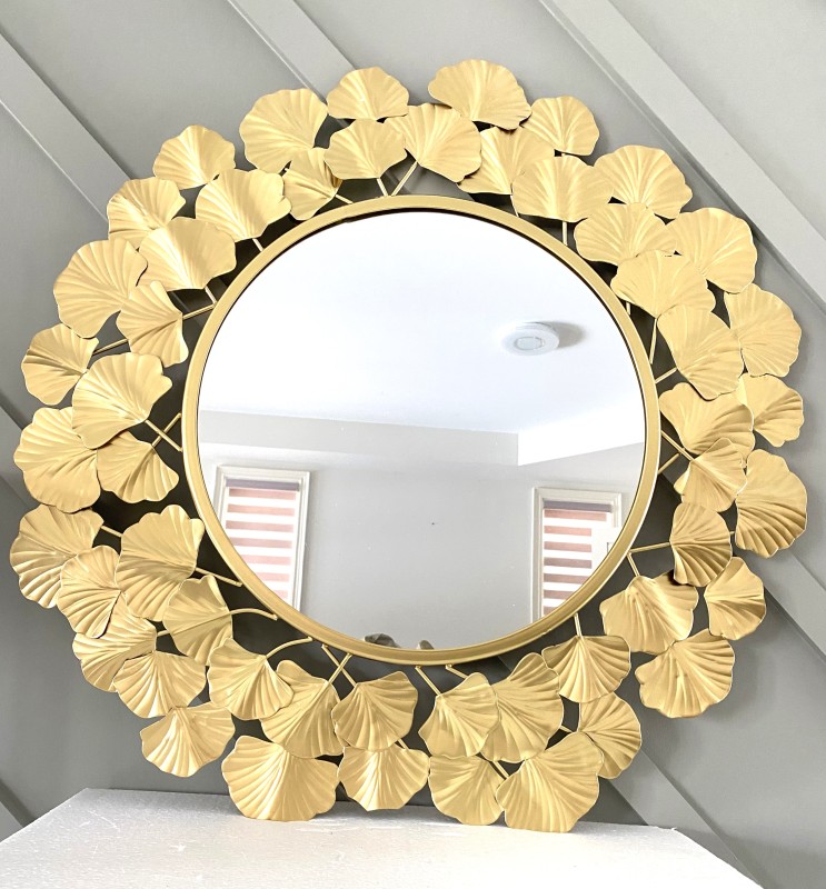 Modern or contemporary home Wall Mirror. Place it in any room for instant personality. Handmade metal iron crafts, three-dimensional, full 3D sense. Golden Color art giving ultimate look.