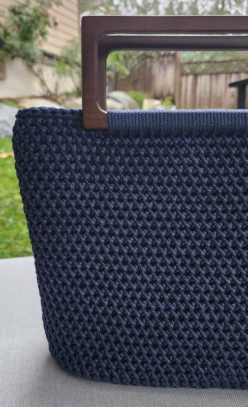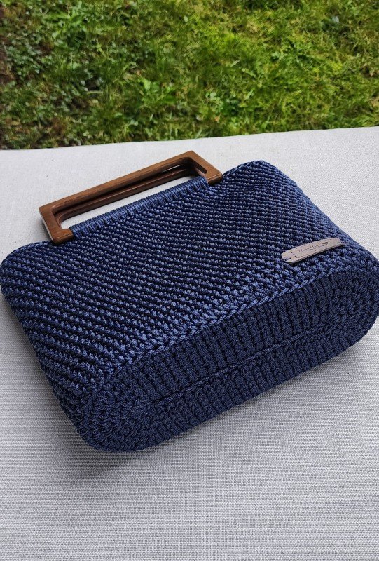 Handcrafted Deep Blue Crochet Bag with Wooden Handles
