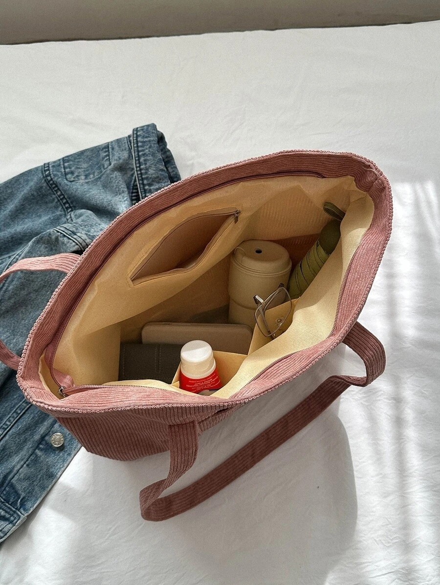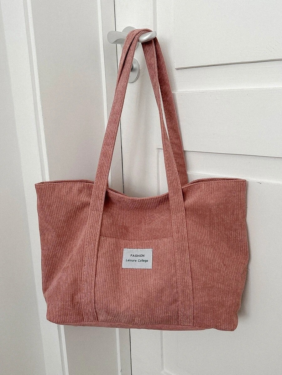 Letter Patch Corduroy Tote Bag