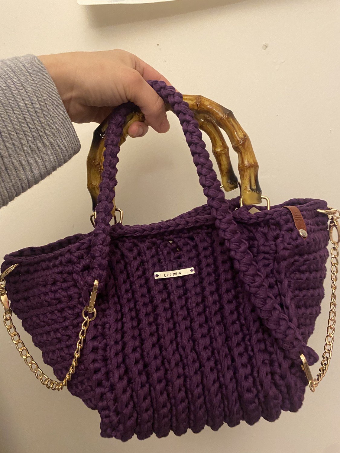 Looped, *"Spacious Crochet Bag with Round Wooden Handle and Long Crochet Strap – Perfect for Every Woman"