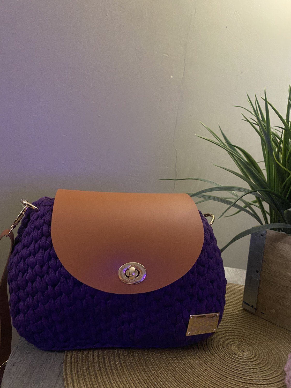 Handmade lady purse attached with leather base,top and belt length of 114cm , fit your phone, wallet, some of makeup and more