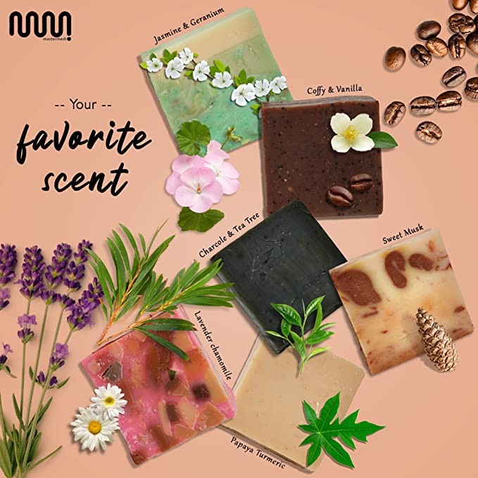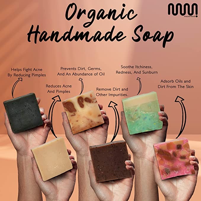 • MOISTURIZING OILS: Ultra nourishing recipe! Our natural plant-based oils in the bath soap bars create a creamy, cleansing lather that softens and hydrates your body and face as you wash. The natural ingredients can help moisturize dry skin and soothe sensitive skin. MasterMedi Organic Soap bars are chemical-free with no artificial colorants. (IDEAL FOR: Dry skin, Moisturizing skin, Mature skin)