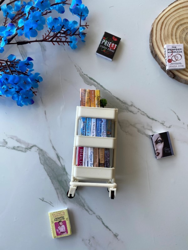 This book cart is perfect for those who love to switch up their reading list frequently. You can fill it with books you're excited to read, or use it to showcase some of your favourite reads. And the best part? It can fit anywhere in your house. It is approximately 5 inches by 2 inches.