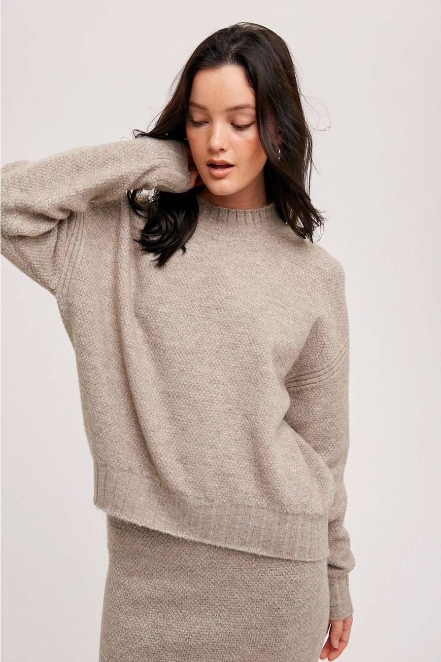 Wrap yourself in unparalleled comfort and style with our Mock Neck Pullover. This knit masterpiece is meticulously crafted to provide you with the ultimate cozy experience.