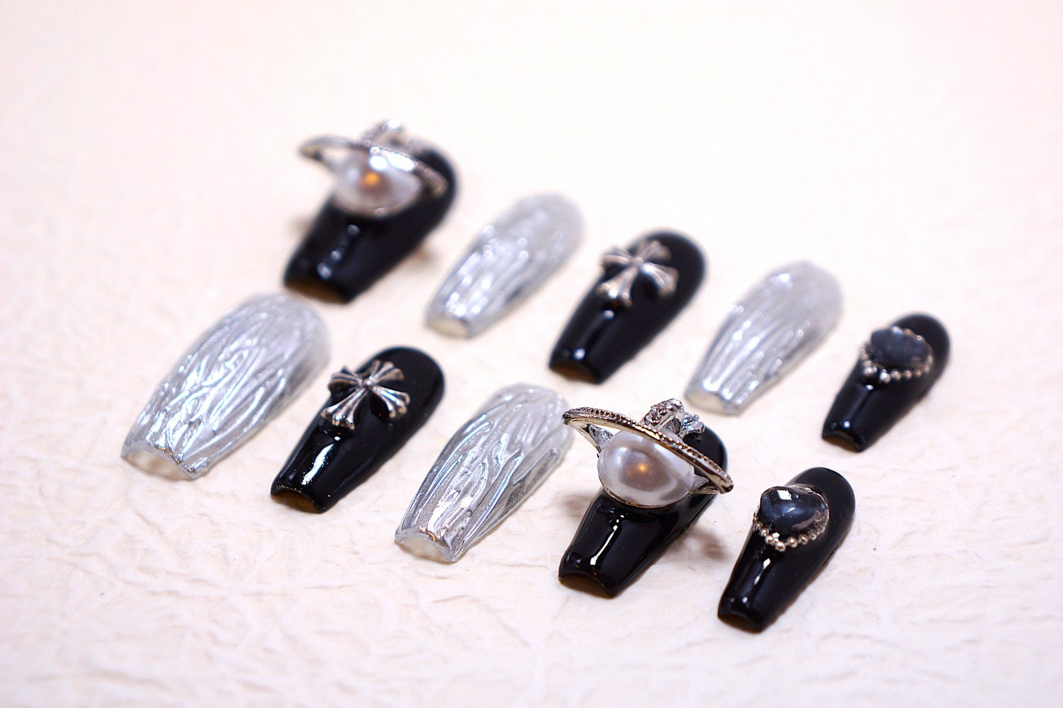 Each set of press-on nails includes a full kit with adhesive tabs, a nail file, a cuticle stick, an alcohol pad and a user guide.