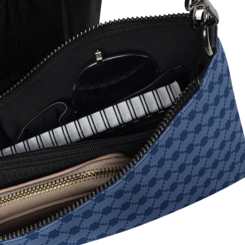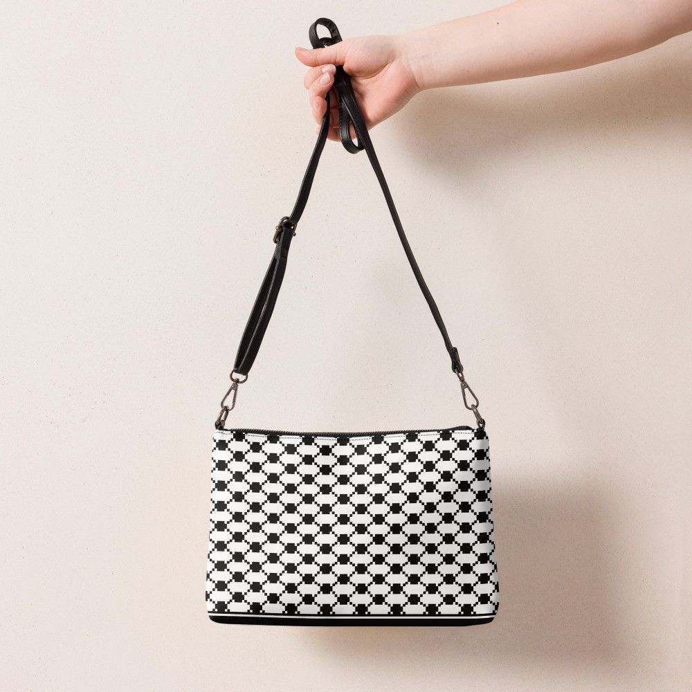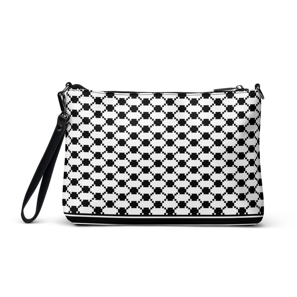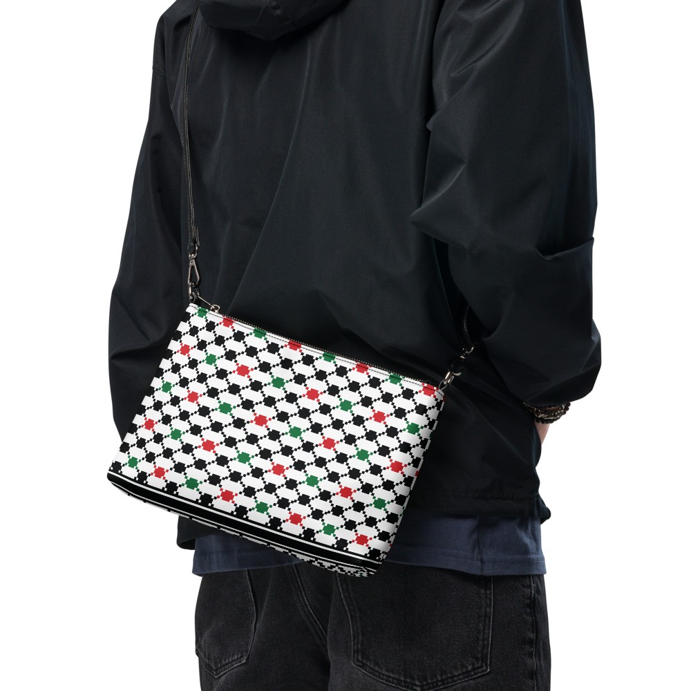 Keep your style on point and your hands free with our versatile three colors Keffiyeh (kufiya) Crossbody Bag. It’s made of premium faux leather and features dark navy kufiyeh pattern. Thanks to the zip-top closure and multiple inside pockets, you can keep your essentials secure and organized. Transform this crossbody bag with removable wrist and shoulder straps to style it for day-to-night looks.