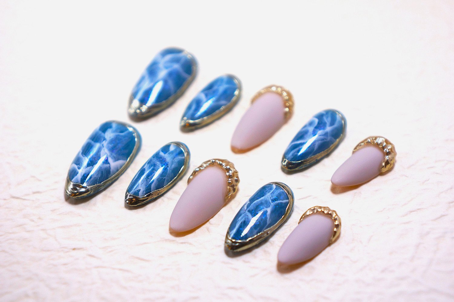 Each set of press-on nails includes a full kit with adhesive tabs, a nail file, a cuticle stick, an alcohol pad and a user guide.