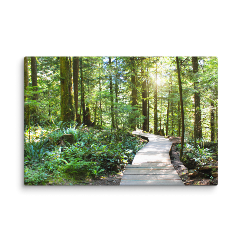 This serene canvas print captures a quiet moment in nature where a peaceful path winds through a tranquil forest. The soft golden light filters through the trees inviting you to take a calming stroll along the path. The lush greenery and dappled sunlight create a sense of peace and serenity evoking the feeling of being deeply connected with nature. Ideal for those who appreciate the calm and restorative power of nature this piece adds warmth and tranquility to any room. Whether you’re looking to enhance a living room bedroom or office this print brings a soothing nature-inspired atmosphere to your space.