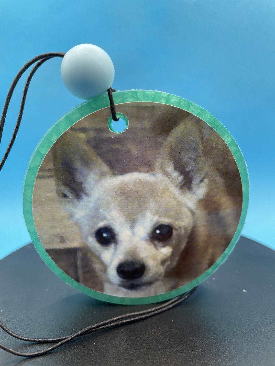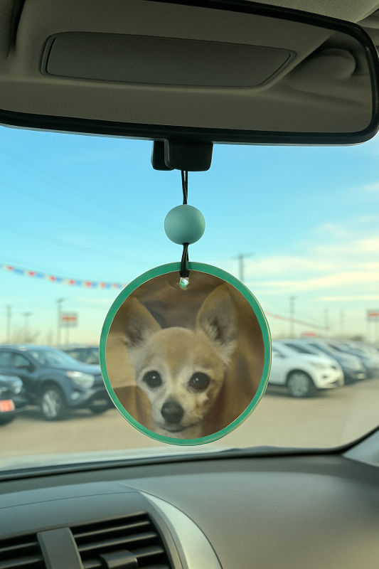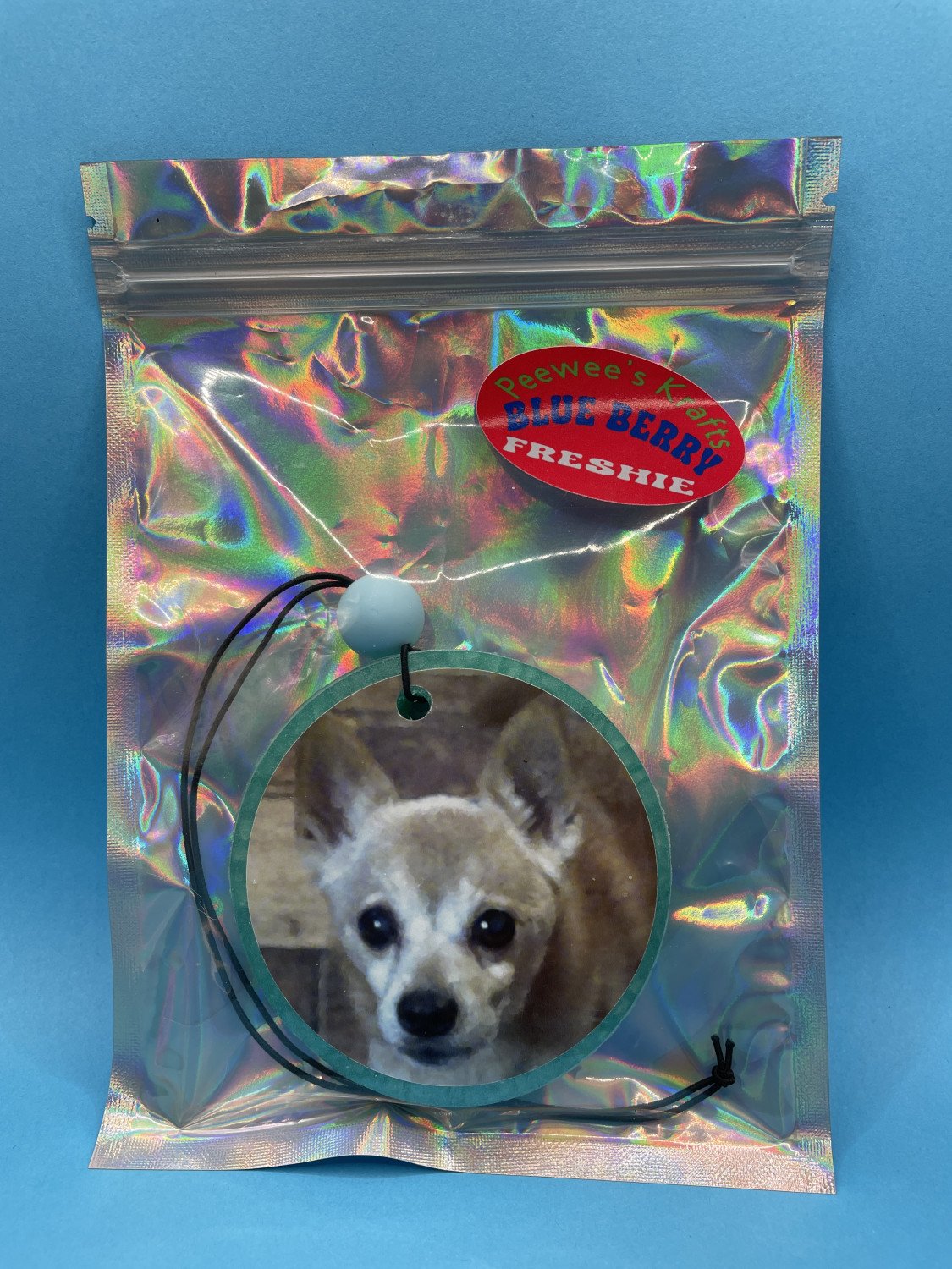 Personized your car freshie with any photo you want. Pictures of your children, grandchildren, pets, car, motorcycle etc. Please send you picture to Baddog1957@mail.com My car freshies are made from baked aroma beads so the fragrance is baked right into the freshie. They are long lasting 1 to 2 months and some customers have told me theirs have lasted as long as 3 months. They come in a airtight smell proof package and will last in the packaging for months before being used. They are 3" X 1/2" round.