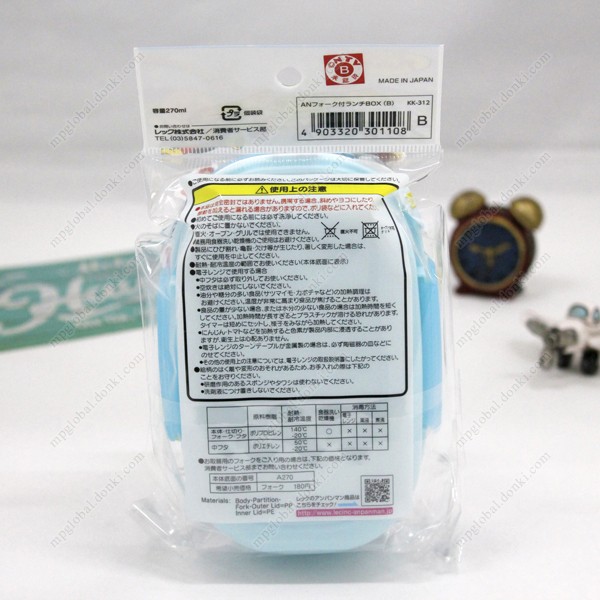 Comes with a fork and is handy when eating outside on excursions etc. Can be used in a microwave and dishwasher (remove the lid).