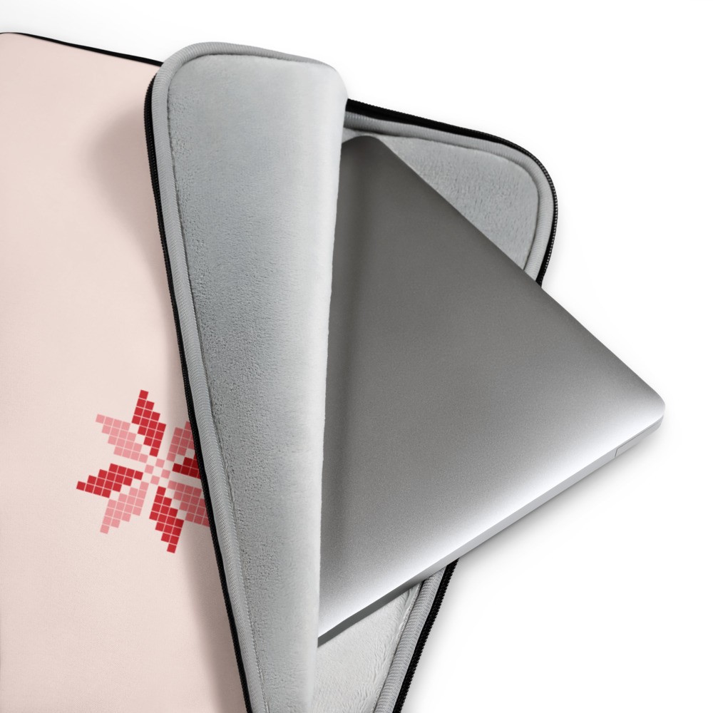 Protect your laptop in style—get this snug, lightweight laptop sleeve while honouring Palestinian heritage with the grace and beauty of intricate Palestinian patterns, particularly the Gaza Cypress Tree (Sarw)!