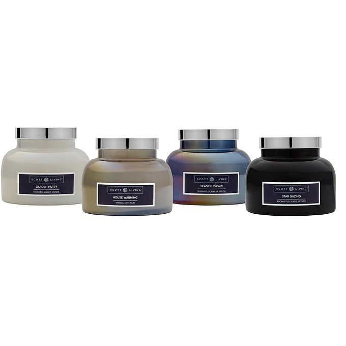 This Scott Living 4-piece 18 oz. candle set imbues your home with serenity through elegant, muted design, calming colors, and subtle fragrances.