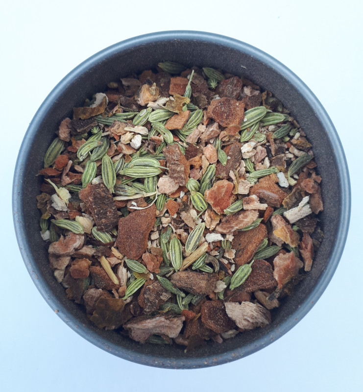 Tasting Notes: When sweetened (recommended), this tea is warm and grounding, with spicy and sweet notes coming from the cinnamon and fennel. Creates a light-coloured, reddish tea.