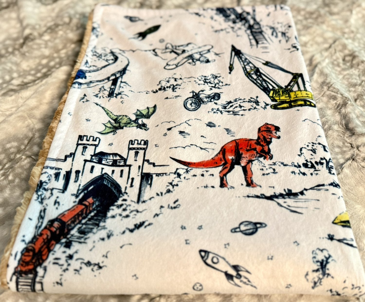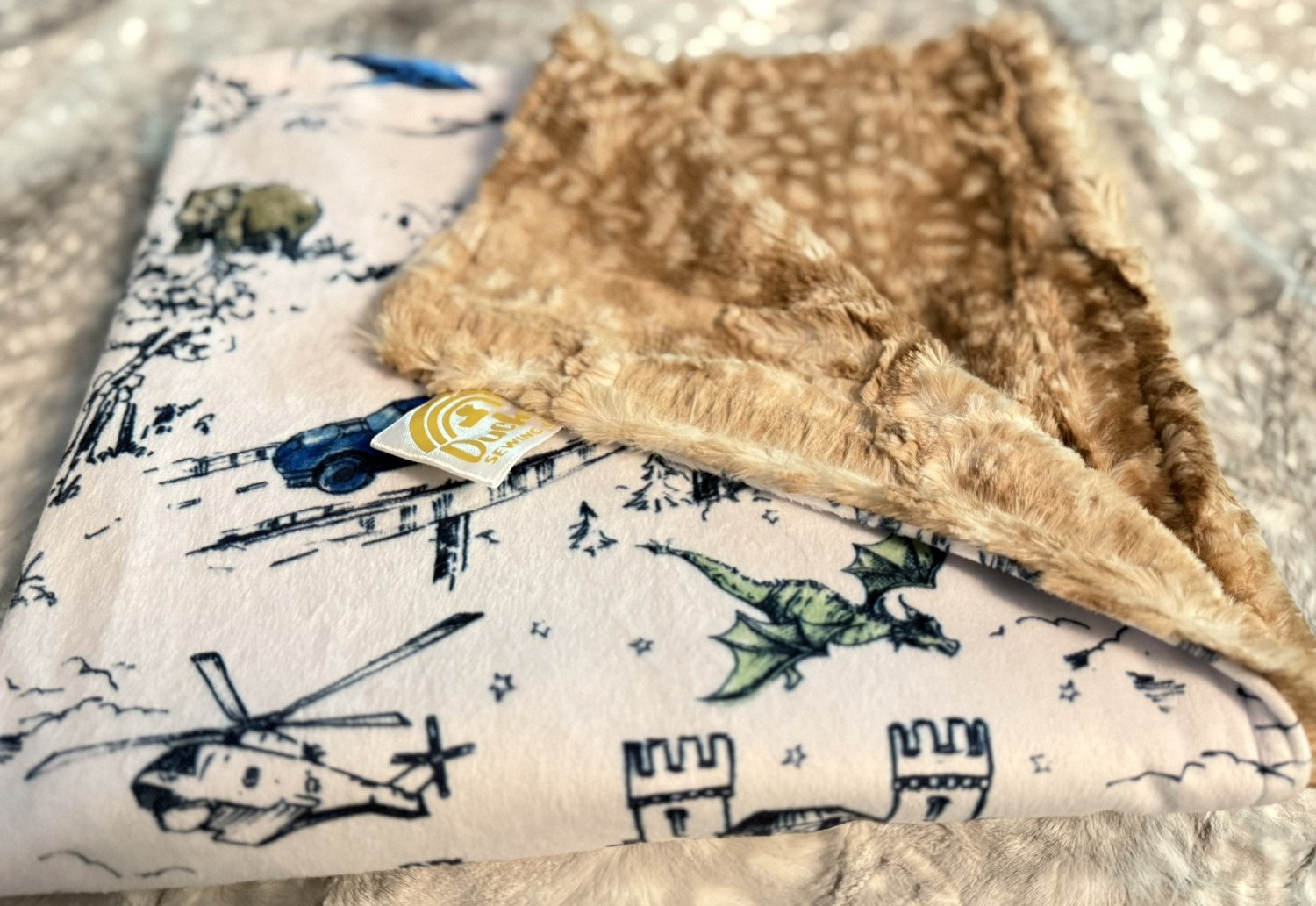 Measuring 18" by 36", this minky baby blanket features stunning Spoonflower fabric on the front showcasing an independent artist’s design. The reverse side is crafted from "Fawn Hide" plush, extra-high pile minky, offering exceptional softness. Made with premium-quality materials, this throw combines artistry and luxury for lasting comfort.