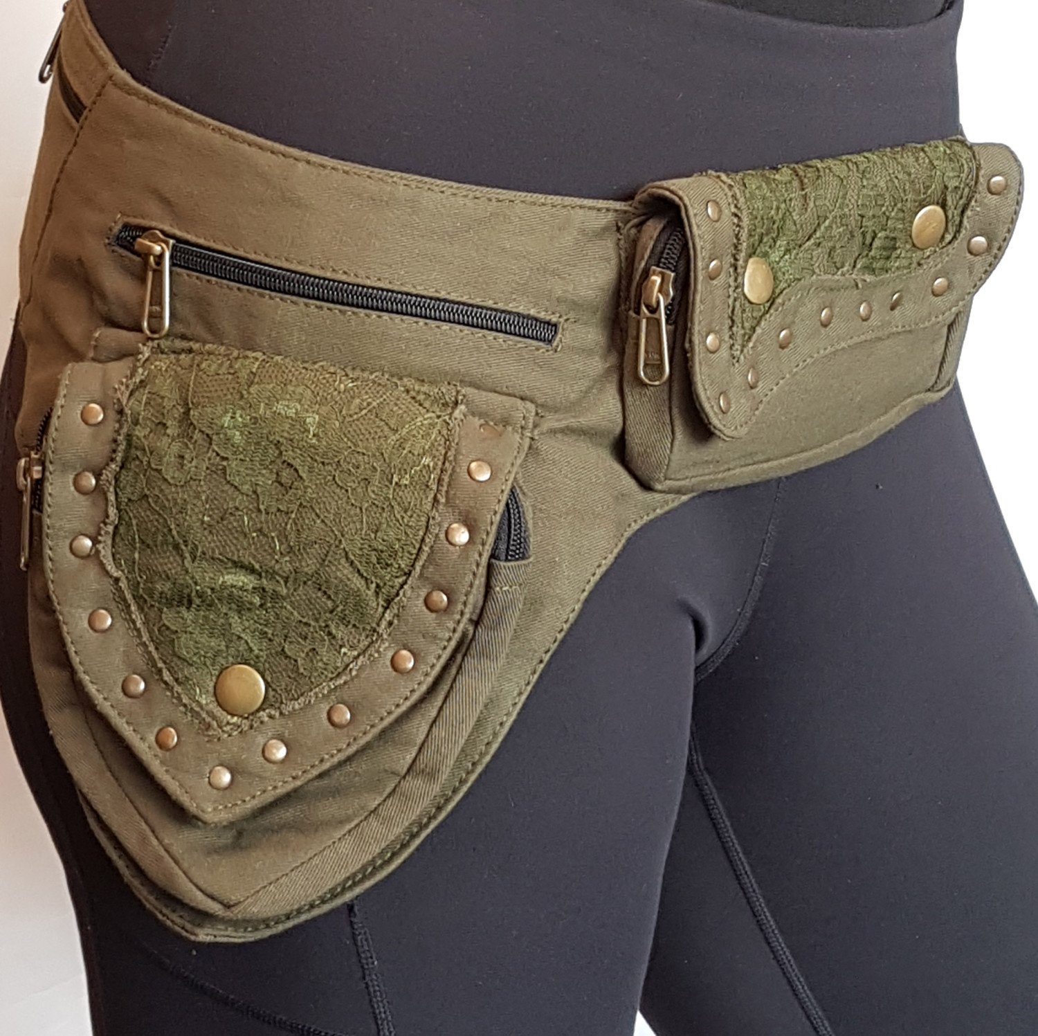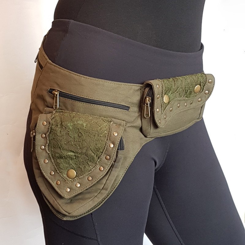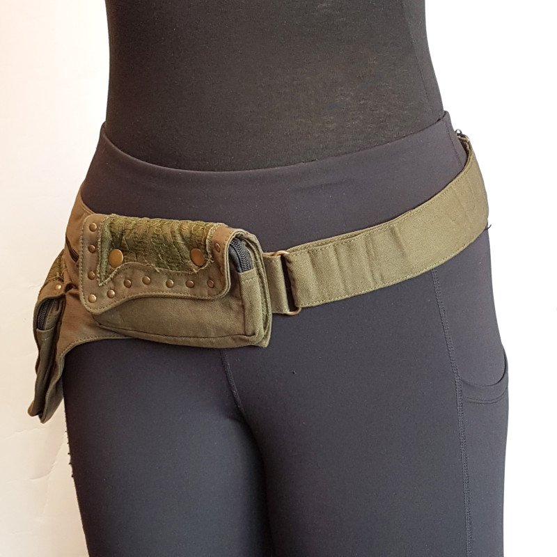 Utility pocket belt in army green Adjusts to 48 inch hip/waist measurement.