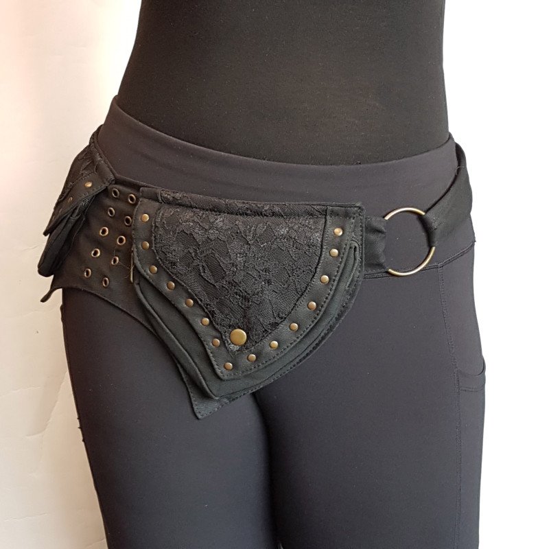 Utlity pocket belt in raven black. Adjusts to 48 inches-hip/waist measurement.