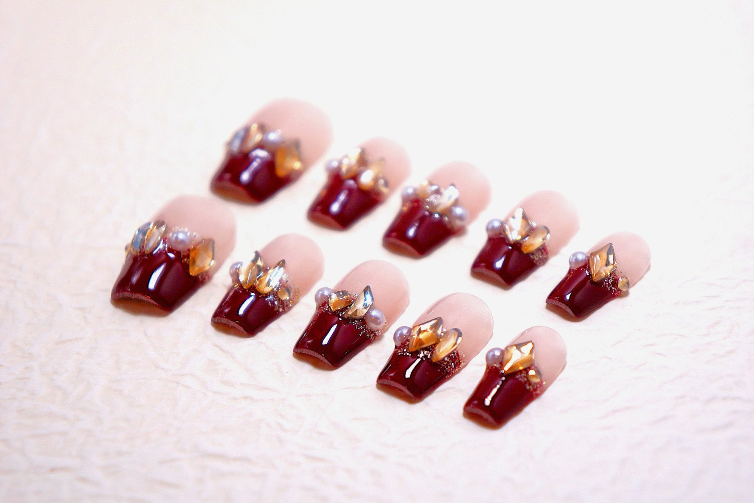 Each set of press-on nails includes a full kit with adhesive tabs, a nail file, a cuticle stick, an alcohol pad and a user guide.